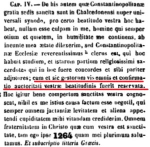 “As for those things which the universal council of Chalcedon recently ordained in favour of the Church of Constantinople, let your holiness be sure that there was no fault in me, who from my youth have always loved peace and quiet , keeping myself in humility. It was the most reverend clergy of the Church of Constantinople who were eager about it, and they were equally supported by the most reverend priests of those parts, who agreed about it.