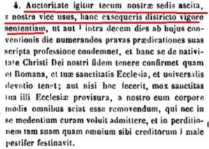“By the authority of St. Peter” is an interesting phrase as it appears and re-appears and it is a play on words here. First, it was believed the popes had a special relationship with St. Peter and operated under his influence (one of the reasons why the prestige of Rome was so high and related to the possession of St. Peter’s relics) so it is referring to the act being done with the counsel of St. Peter. Second, though “confirmation” sounds clumsy in English as he is not confirming but actually annulling, he is referring to the act of an auctor in terms of confirming or rejecting.